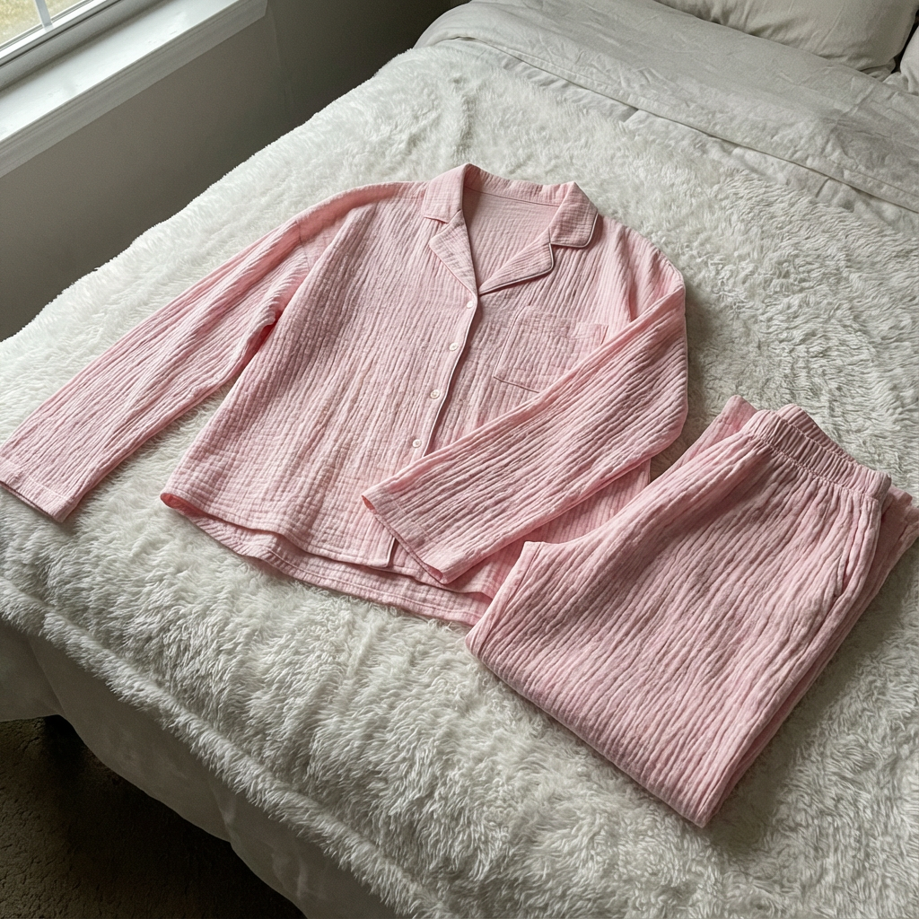 Presentamos Soft Ritual Pajama, un pijama diseñado para disfrutar de los momentos de calma con elegancia y comodidad. Su tejido ligero y suave envuelve el cuerpo con delicadeza, ofreciendo una sensación agradable y relajada sin renunciar a un diseño cuidado. Una pieza pensada para convertir el descanso diario en un pequeño ritual de bienestar.